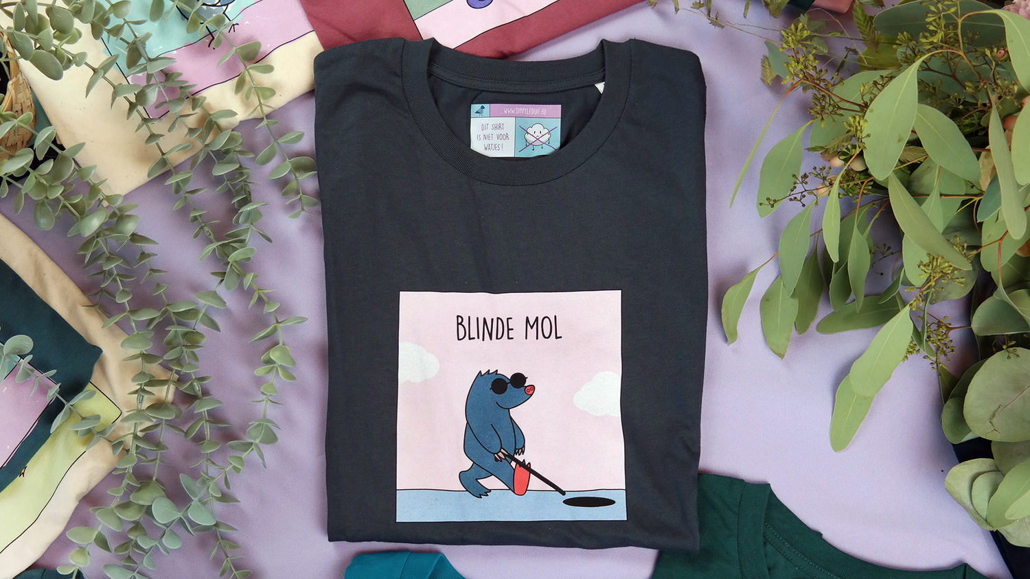 Speciaal voor het 10de seizoen van De Mol, brachten we deze special edition t-shirt van de 'Blinde Mol' uit. Nog steeds te koop voor zij die stekeblind zijn!